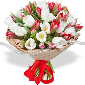 Для моей принцессы - букет из белых и розовых тюльпанов