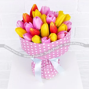 Яркий праздник - букет из желтых и оранжевых тюльпанов