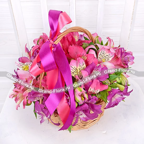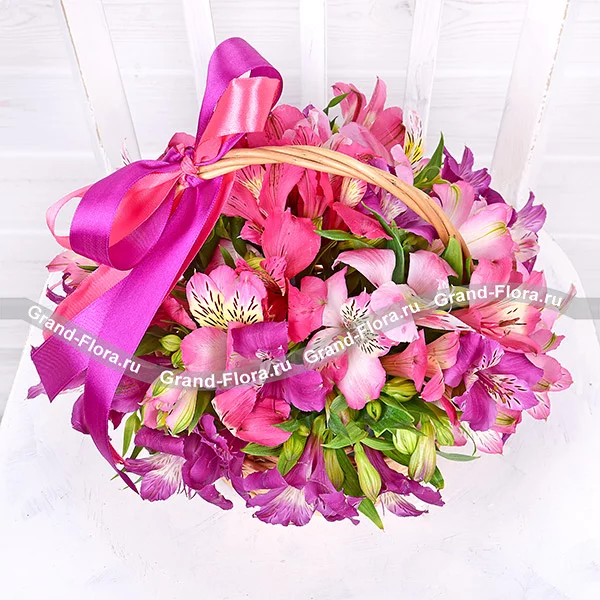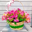 Альстромерии розовые и фиолетовые – 11 шт.,оазис, корзинка.