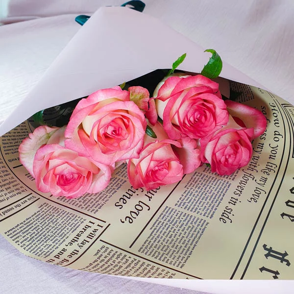 Роза розовая - 5 шт 60 см, упаковка, лента.
